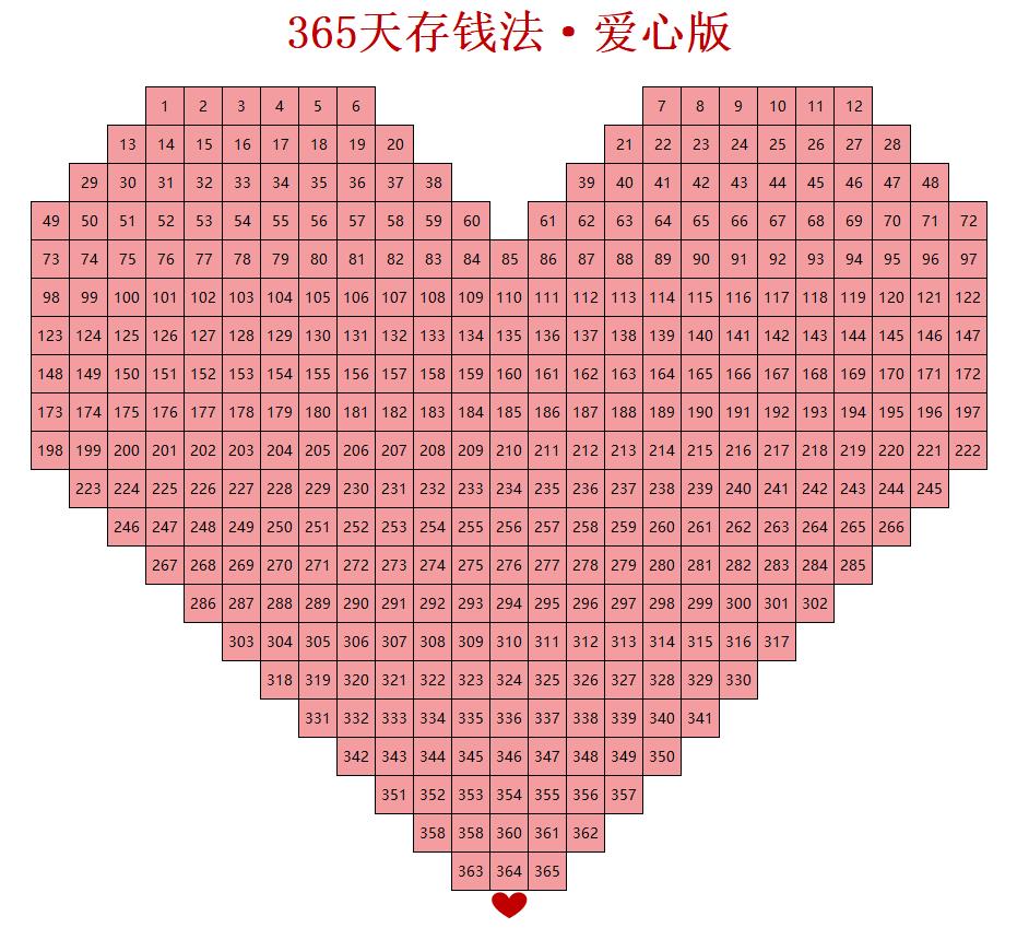 做法非常简单,就是在365天内,每天存入1~365中任意一个数字对应金额的钱,保证每天都存入,并且每天存的数额不许重复。