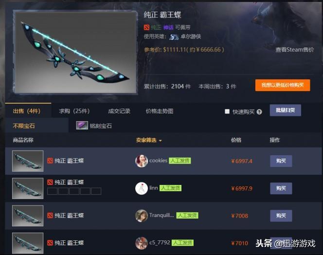 DOTA2中的饰品都是单独一件件存在的,不像传统的moba类游戏时装皮肤都是一整套的,DOTA2这游戏中的饰品是可以随意组合的,你可以将好多不同套装的饰品进行组合变成自己独一无二的绝美皮肤!而且DOTA2的玩家群体年龄也都偏大一些,毕竟都是从传奇游戏DOTA中过度来的,好多人在当时的年代是没有往游戏里冲过钱的,现在长大了有了自己的经济基础,为自己曾经的信仰充值也是很可以理解的。这些也造成了DOTA2的饰品价格高居不下,尤其是绝版的一些饰品更是天价!