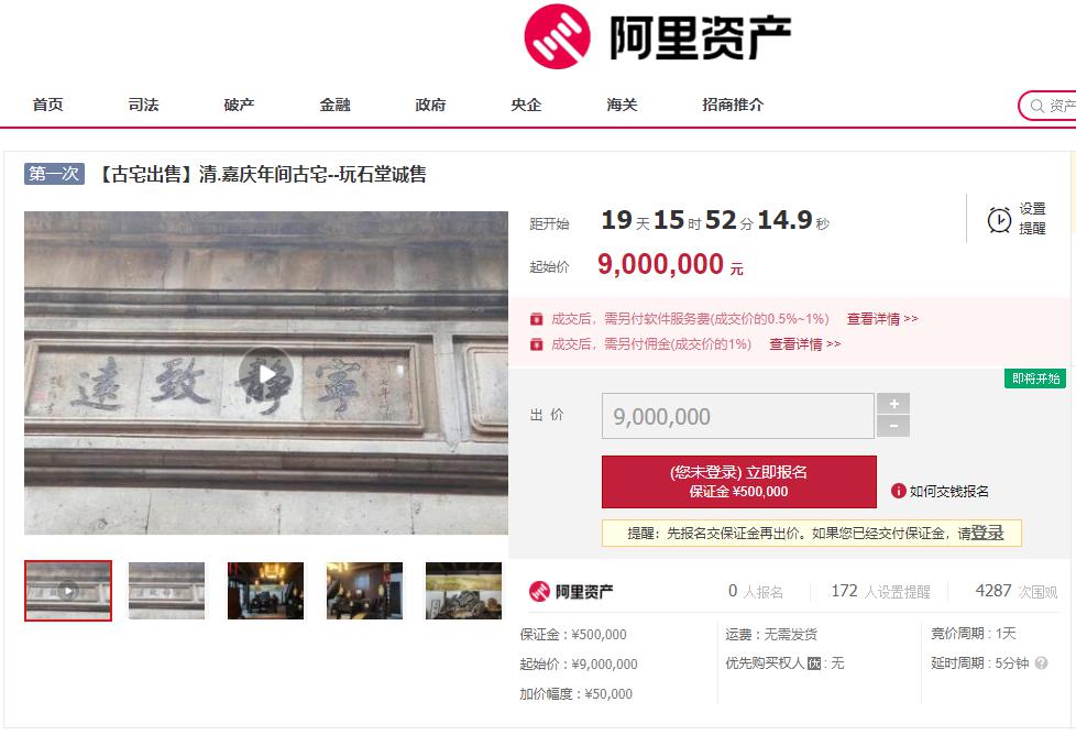 截至发稿前,暂时还没有人报名参与竞拍,但明朝古宅的围观次数已经近 7000,有 246 人设置了开拍提醒。