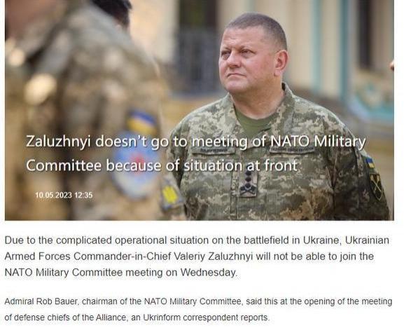 北约军事委员会主席鲍尔 10 日在会议开幕时称,由于前线作战形势复杂,乌军总司令扎卢日内无法参加会议,乌军代表将提供有关乌战场局势最新发展的信息。