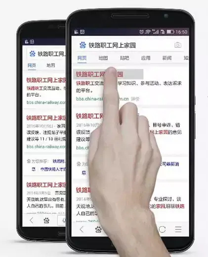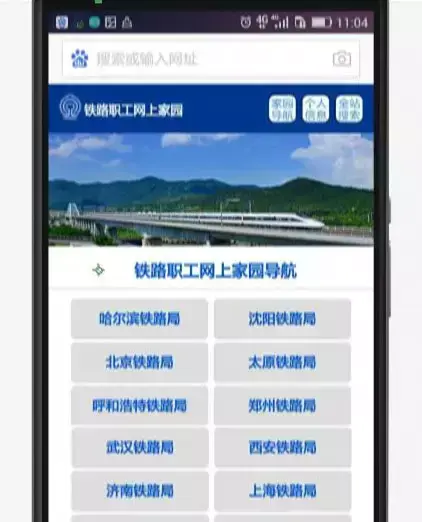 首先,用手机浏览器进入百度首页,查找“铁路职工网上家园”,点击进入。