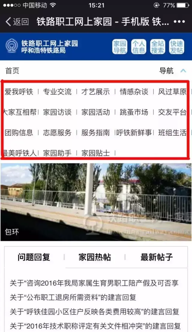 当您看到“铁路职工网上家园导航”几个字时,恭喜您,已经成功进入了网上家园的主界面,界面如图所示。