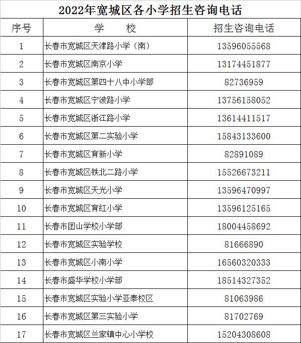现公布宽城区各义务教育学校招生咨询电话,若各位家长在接到学校的审核通知后,需要咨询,可以拨打各校的招生咨询电话。