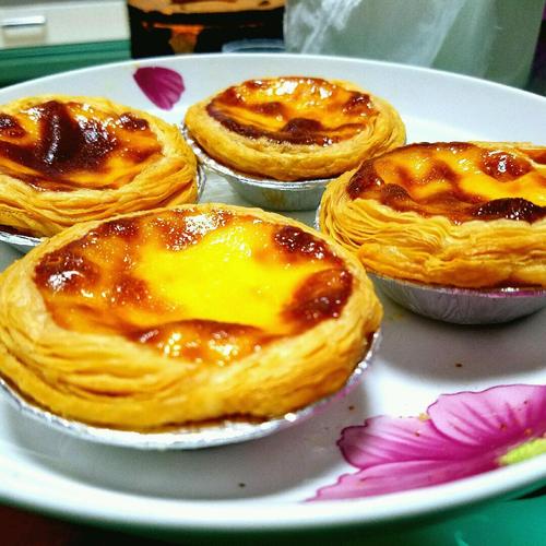接下来,我们来看看蛋挞。蛋挞起源于中国广东地区,是一种以酥皮和蛋黄馅为主要原料的甜点。蛋挞的酥皮和葡挞的酥皮制作方法相同,都是由面粉、牛油和糖混合制成的。但是,蛋挞的蛋黄馅是由鸡蛋、牛奶、糖和香草精混合制成的,烘烤后呈现出金黄色的外观和丝滑的口感。蛋挞的特点是蛋黄馅的比例较大,因此口感更加醇厚和丰富。