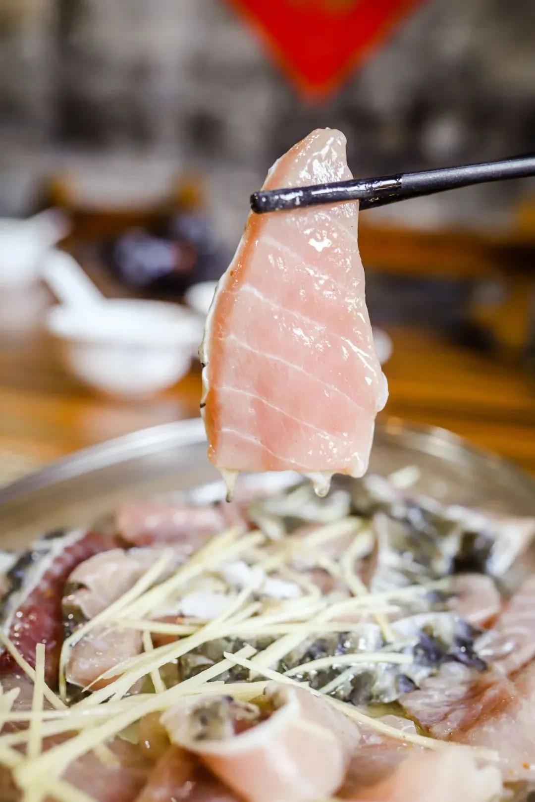 刚上水的鱼片雪白有光泽,犹如出水芙蓉般美艳动人;咀嚼间能清晰感受到鱼肉的鲜甜嫩滑,实在让人不得不拍案叫绝!
