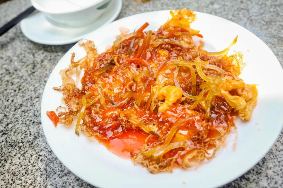 经典广东名菜——五柳炸蛋,这里也有。颜色抢眼鲜艳,味道酸甜可口,老人小孩都十分爱吃。