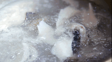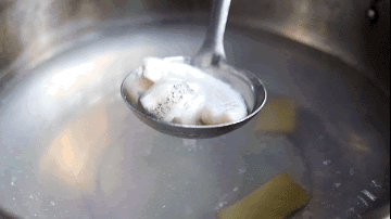 只需搭配几块姜片来去腥,当清水开滚后,就可以将鱼片倒入其中,偶尔焯动翻转一下即可。