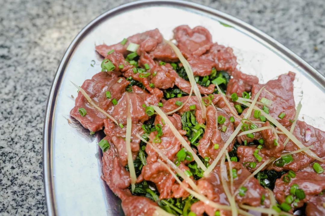必点的名菜就是这道菜心干蒸牛肉!精选每天现宰的顺德水牛肉,每一口牛肉都包含牛肉独有的香浓,真的只有这里才有这味道。