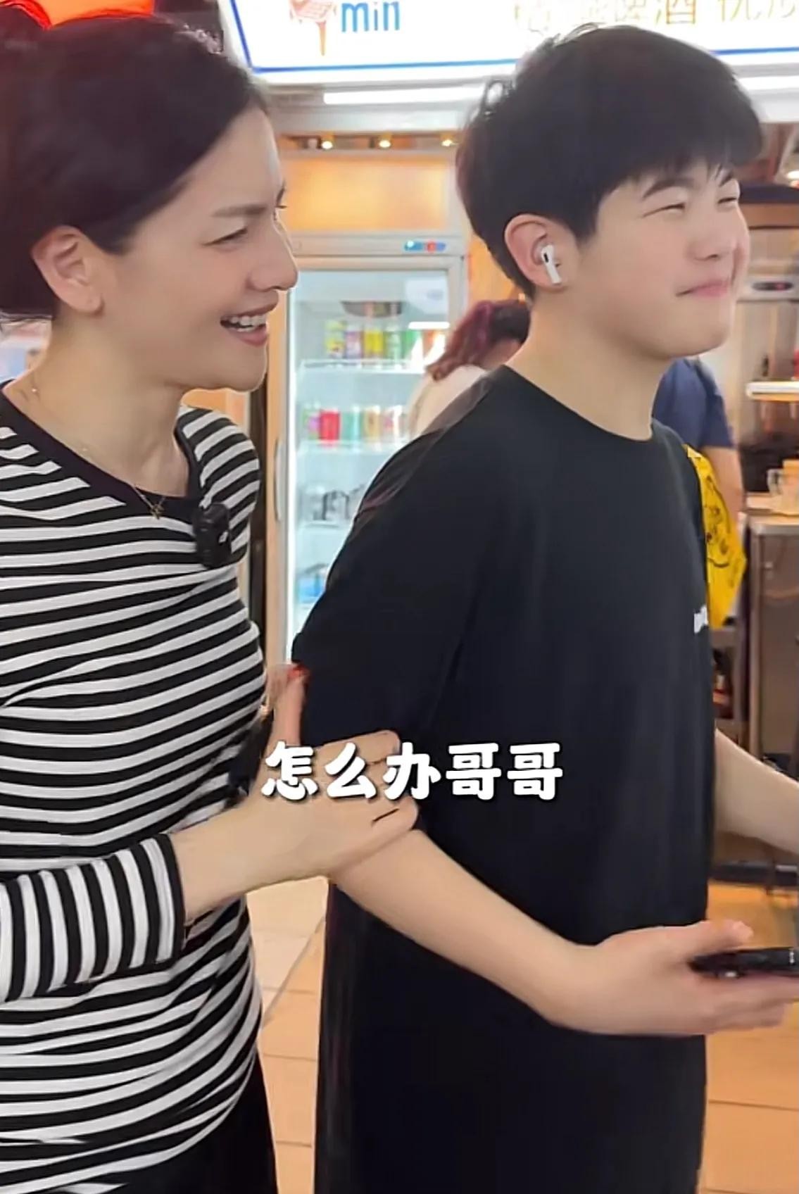 可以看到13岁的安吉个子非常高了已经,也度过了当初成长发胖的阶段,颜值帅了回来,和妈妈相处的时候,他尽显男子汉气概,非常成熟稳重。