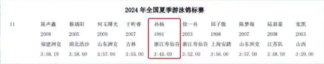 最新的秩序册显示,孙杨报项成绩为3分45秒。