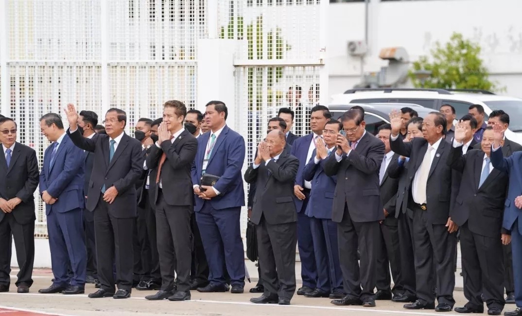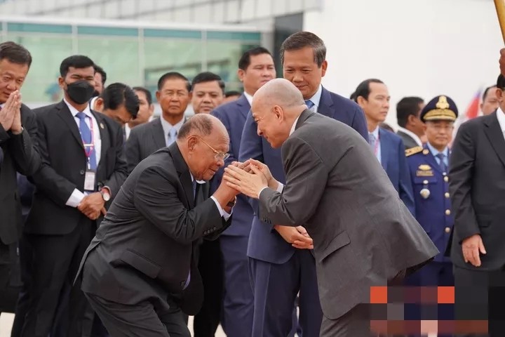 90 岁的韩桑林给西哈莫尼国王机场送行!