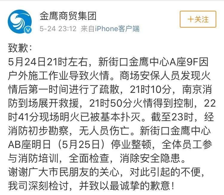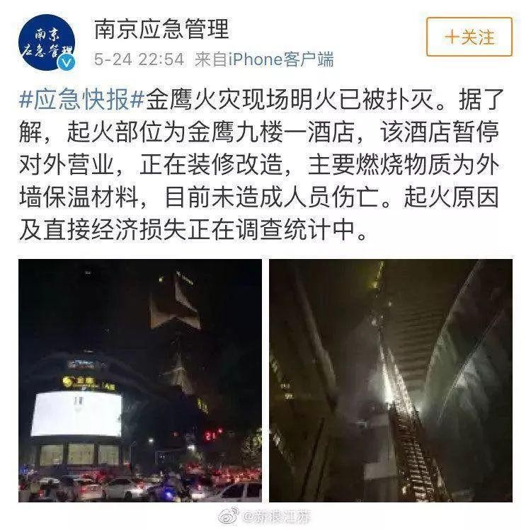 “5·24”南京金鹰购物中心火灾情况通报