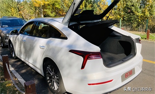全新奔腾B70的尾部采用了贯穿式的尾灯,两侧灯组为Y字造型,离远看有点像螃蟹的大钳子,也和前大灯做到了很好的呼应,同样使用了LED光源,点亮后内部构造很有特点,除此之外,新车还采用了掀背式设计,尾门缓缓打开那一刻有着小小的仪式感,内部很深也很平整,要比普通三厢轿车更实用,后排座椅放倒后,拉些大件物品也很给力。