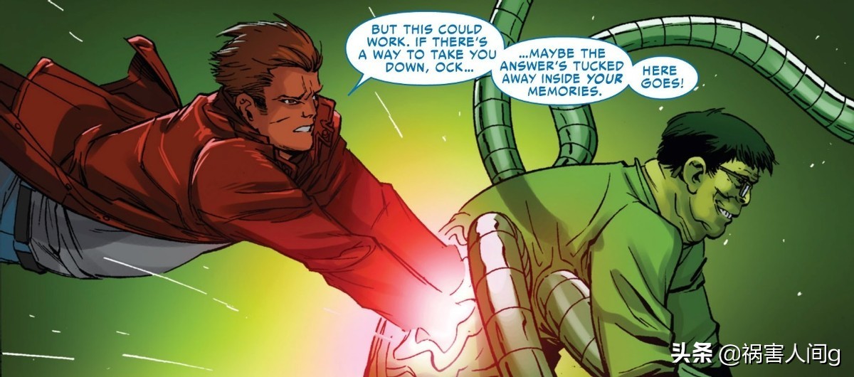 由此开始开启了究极蜘蛛侠的时代,拥有章鱼博士意识的究极蜘蛛侠取代了彼得帕克的蜘蛛侠。