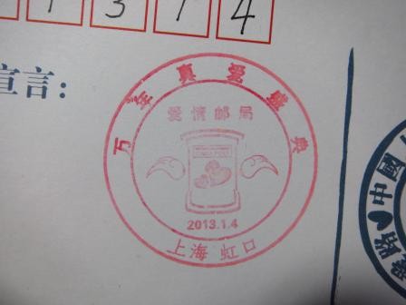 离甜爱路邮筒不远的溧阳路1338号四川北路街道门卫室,可以盖到一枚爱心邮戳,寄给自己的伴侣。在鲁迅公园邮政支局,可以盖到甜爱路纪念邮戳,但仅限于特殊纪念日(如:201314)。