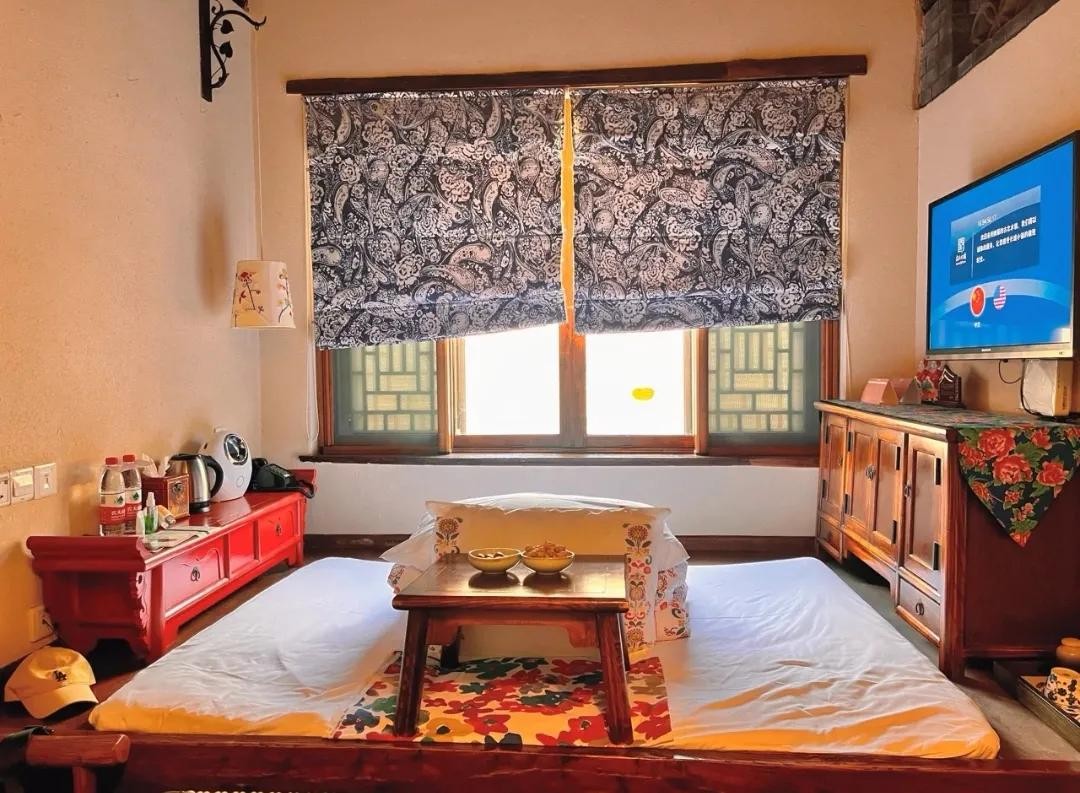 客栈布局采用“前宿后汤”的方式。前院是温暖环绕的北方暖炕,后院则是抬头可望星空的私汤温泉。