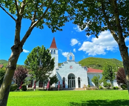 前临烟波浩淼的桃峪口水唱库背靠绵延起伏的燕山山脉。与西部银山塔林及东部大杨山森林公园相毗邻举目长空一碧千里,风景美不胜收。