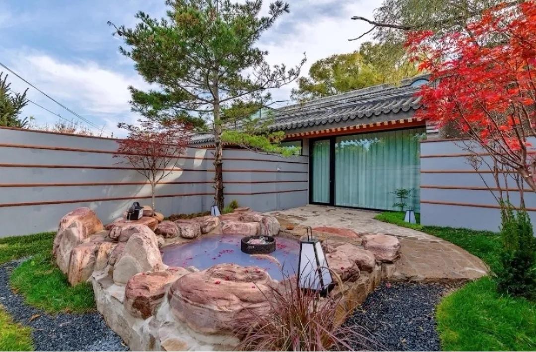 小汤一瓢以京郊一处古宅庭院为基础,结合日式精致、简约的设计理念,充分融合小汤山天然温泉元素,打造了一处隐于都市、舒适尽享的私汤度假胜地。