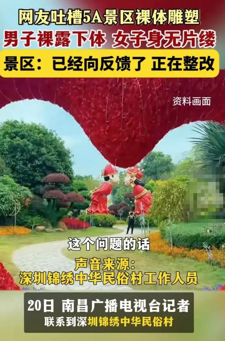 裸露下体的雕塑引发热议,5A级景区被狠狠"吐槽"。