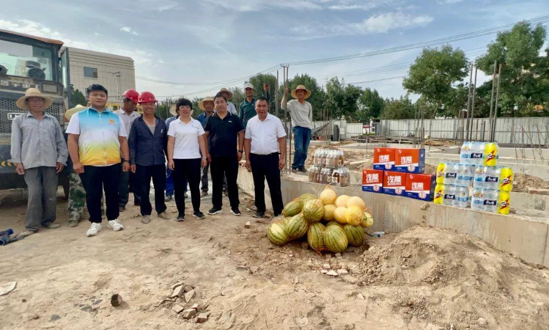 慰问现场,骆驼城镇总工会为奋战在一线的建筑工人送去西瓜、矿泉水等慰问品和关怀,让一线工人感受到烈日酷暑下的清凉和关心,感谢他们头顶烈日,一如既往的辛勤付出和坚守,为项目安全、优质、高效建设贡献力量,并叮嘱他们做好自身防护,注意劳逸结合,以饱满的工作热情推进项目建设任务有序进行。