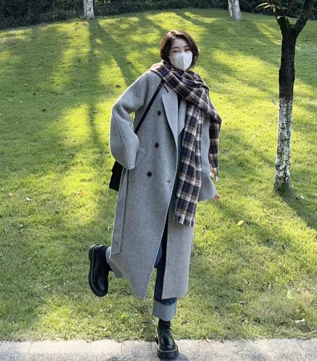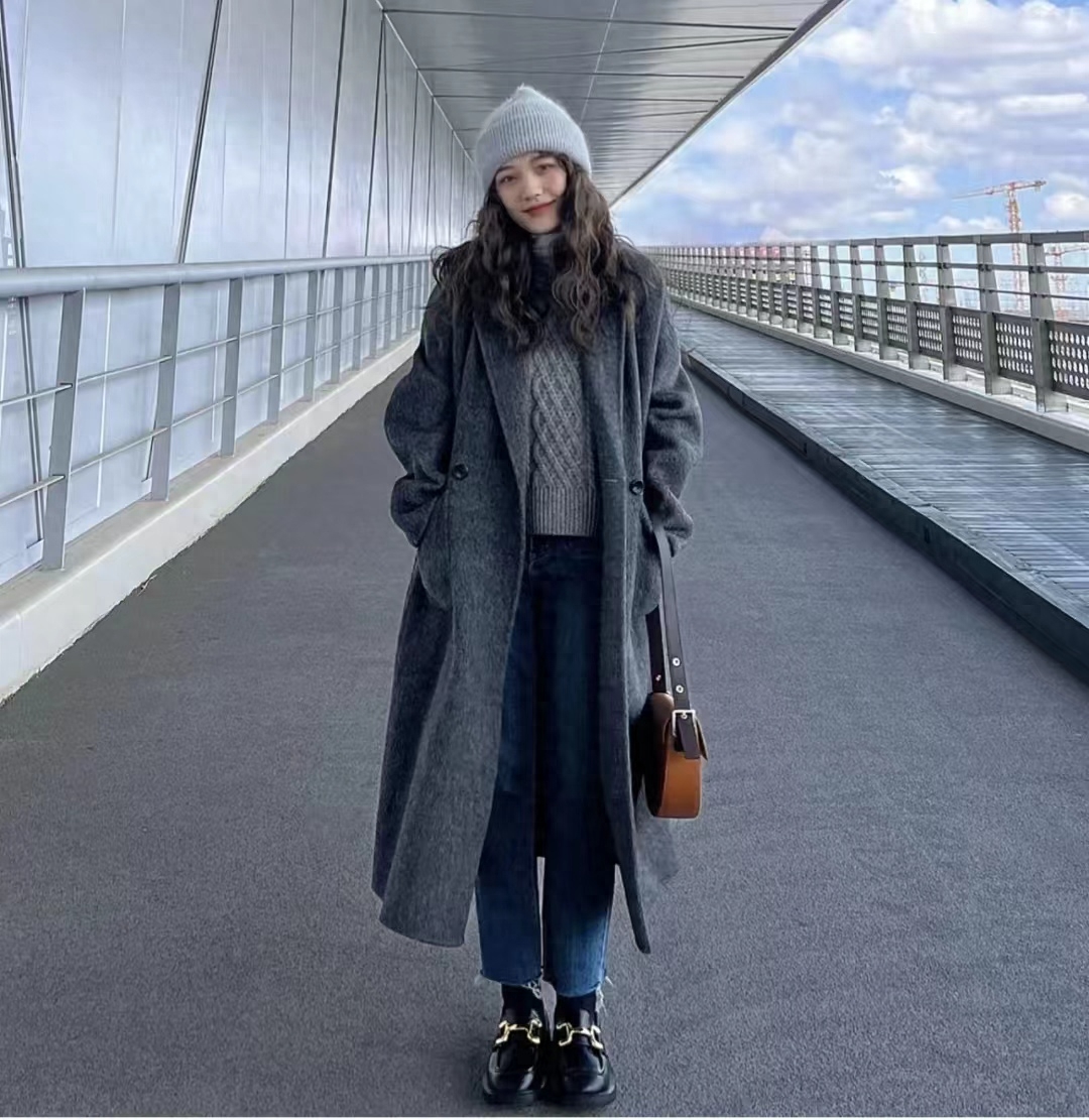 高级灰宽松韩系双面呢大衣真的太好看了,很高级的灰色调,永不过时的经典配色~~