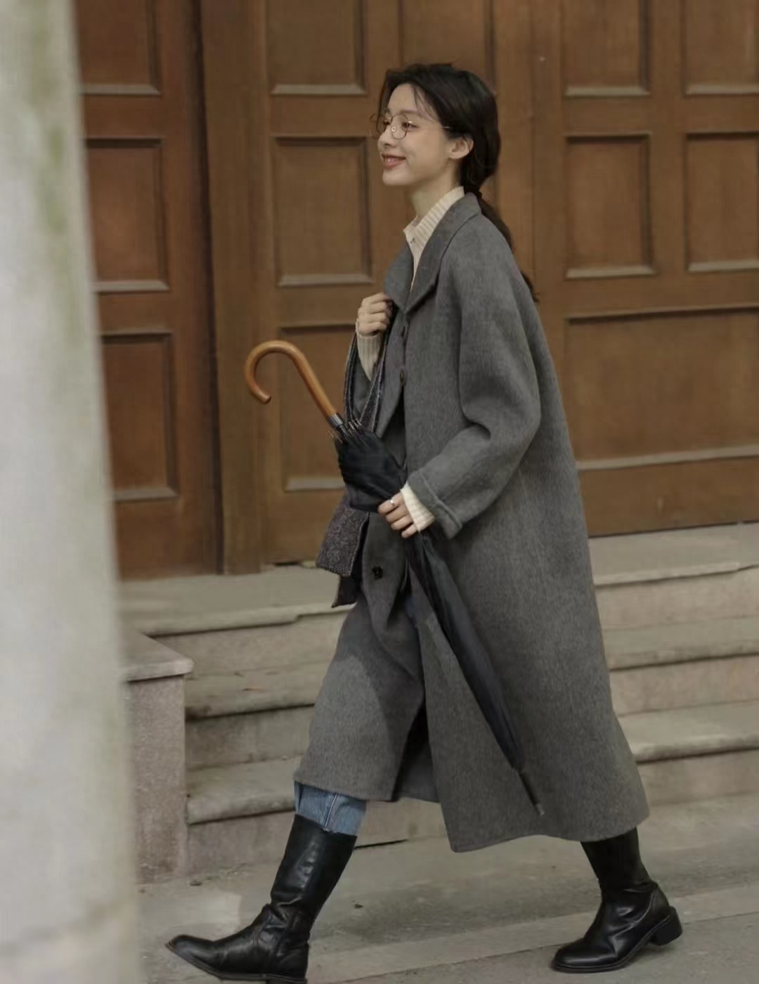 大衣:paperlll;靴子:一力米灰YILIMIHUI