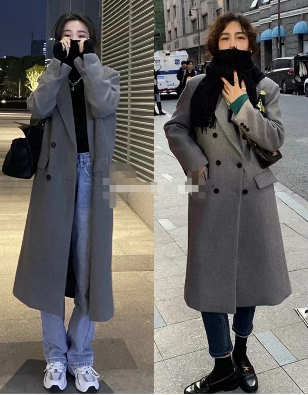 look16 灰色大衣+黑色打底/牛仔裤