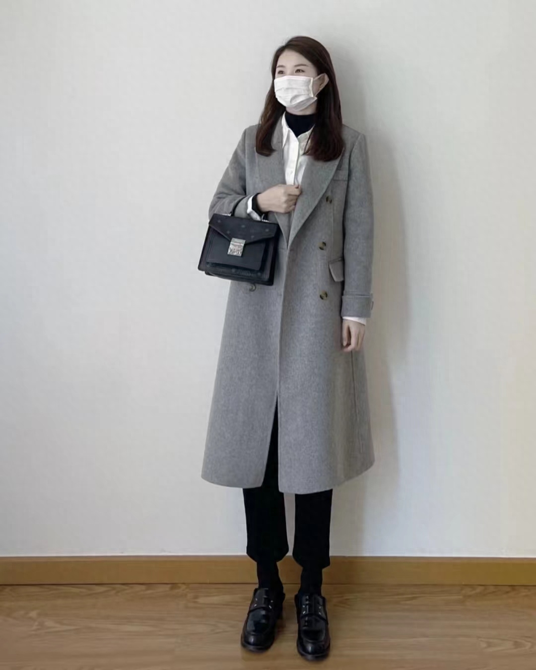 look9 灰色大衣+黑色高领/黑色裤子