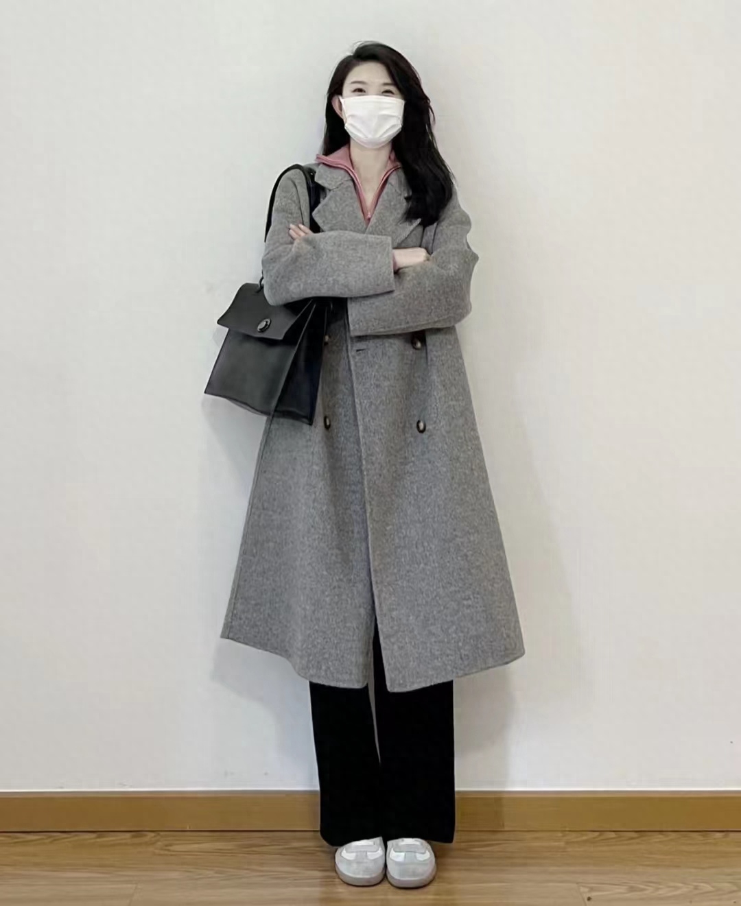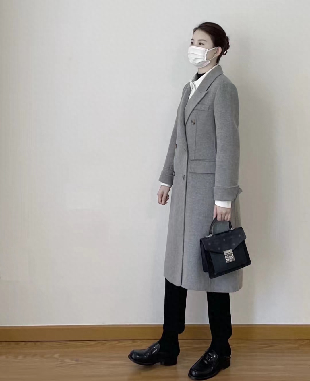 look6 灰色大衣+黑色