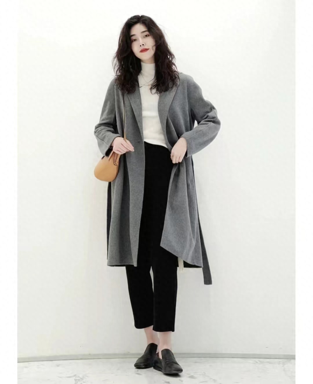 秋冬的高级感就交给灰色大衣吧,这件到膝盖长度的大衣不压身高,上身轻盈舒适,内搭搭配基础的黑白色服饰也质感满满~~