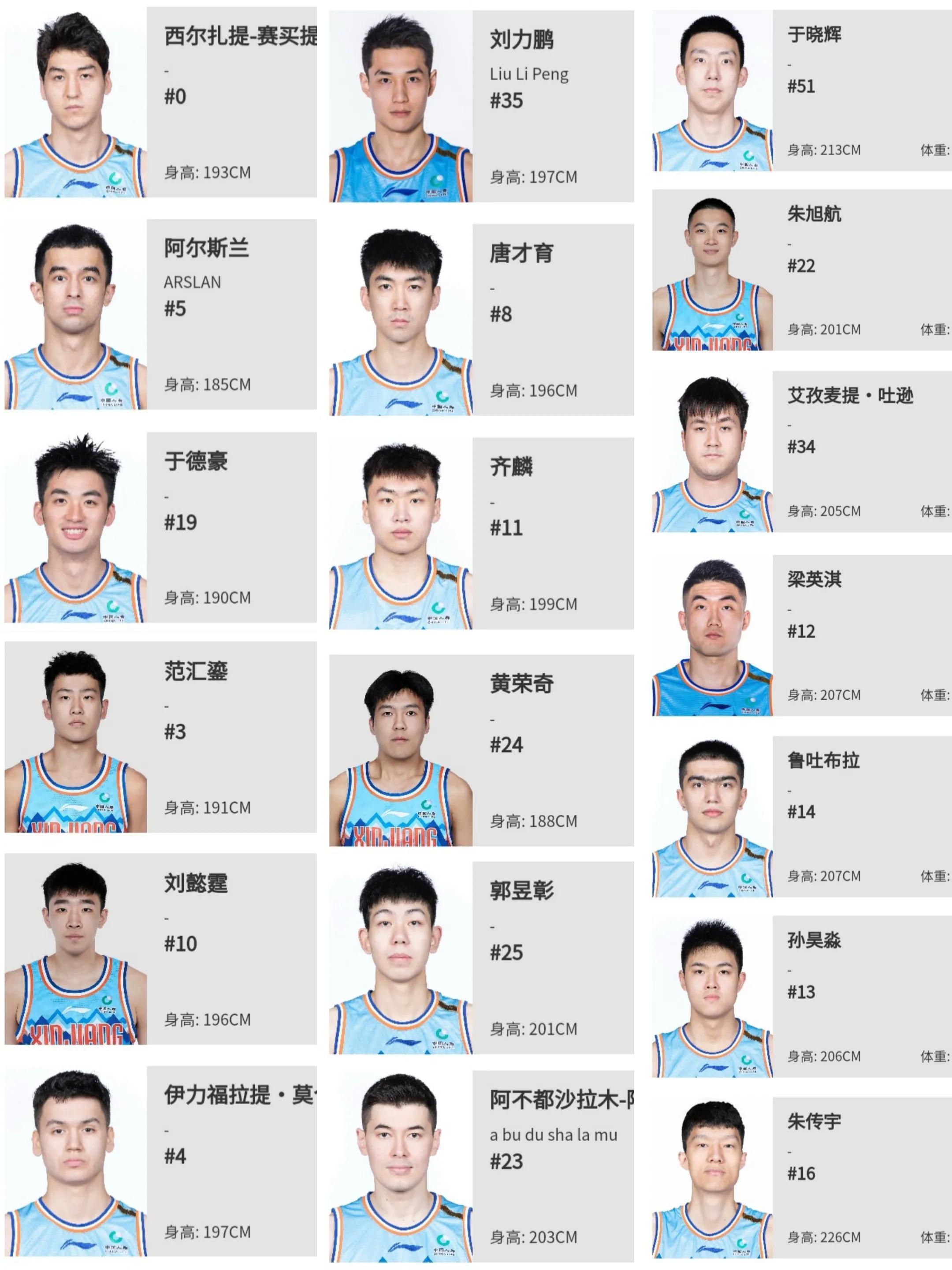 新疆男篮19个球员无球打,后卫6人,小前锋6人,大前锋和中锋7人