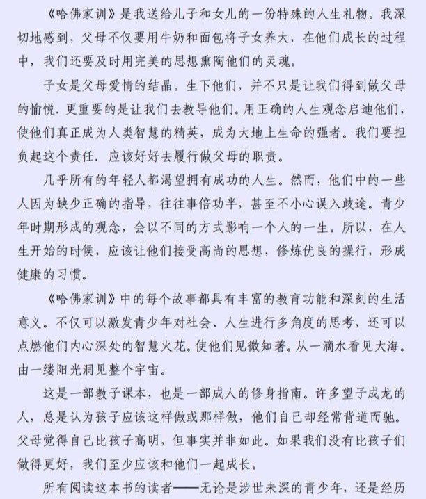 《哈佛家训》中的每个故事都具有丰富的教育功能和深刻的生活意义,不仅可以激发青少年对社会、人生进行多角度的思考,还可以点燃他们内心深处的智慧火花,使他们见微知著,从一滴水看见大海,由一缕阳光洞见整个宇宙。 这是一部教子课本,也是一部成人的修身指南。许多望子成龙的人,总是认为孩子应该这样做或那样做,他们自己却经常背道而驰。父母觉得自己比孩子高明,但事实并非如此。如果我们没有比孩子们做得更好,我们至少应该和他们一起成长!
