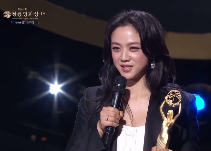 而这次参加韩国第45届青龙奖,她也毫无疑问的拿了人气演员奖。