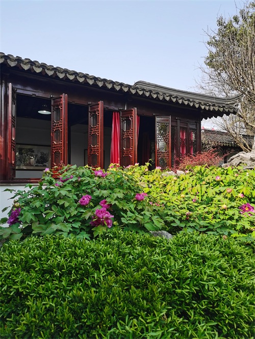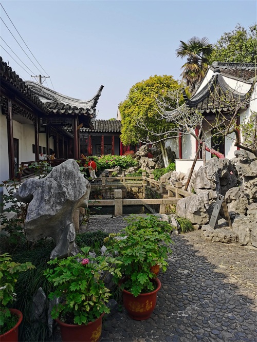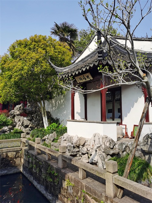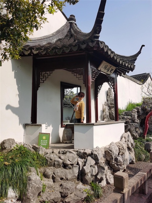 春在堂后,尚有隙地。乃与内子偕往相度,而成斯园。即於春在堂后连为一小轩,北向,颜曰认春。白香山诗云:"认得春风先到处,西园南面水东头"。吾园在西,而慈轩适居南面,"认春"所以名也。认春轩之北,杂莳花木,屏以小山。山不甚高,且乏透,瘦,漏之妙,然山径亦小有曲折。自其东南入山,由山洞西行,小折而南,即有梯级可登。登其巅,广一筵,支砖作几,置石其旁,可以小坐。