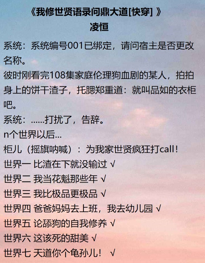 第四本:《我修世贤语录问鼎大道[快穿] 》凌恒 已完结