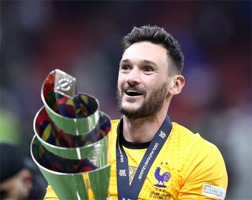 10月10日,法国队守门员洛里在颁奖仪式后手举冠军奖杯庆祝。