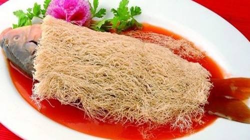 后来拉面传入了开封,人们又用细如丝的拉面油炸后与熘鱼搭配起来,使其锦上添花。糖醋熘鱼味道鲜美,秒在一道菜肴有两种食趣。有“先食龙肉,后食龙须”的美誉,成为了许多宴席上必不可少的一道名菜。如果你来开封游玩,一定要品尝一下。