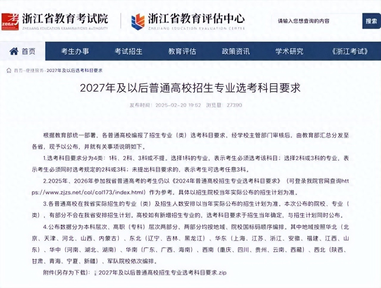 日前,浙江省教育考试院正式发布《2027年及以后普通高校招生专业选考科目要求》,其适用对象是2027年及以后参加高考的学生。这就是说现在的高一学生正好“赶上”,而高二、高三学生依旧采用原有政策。