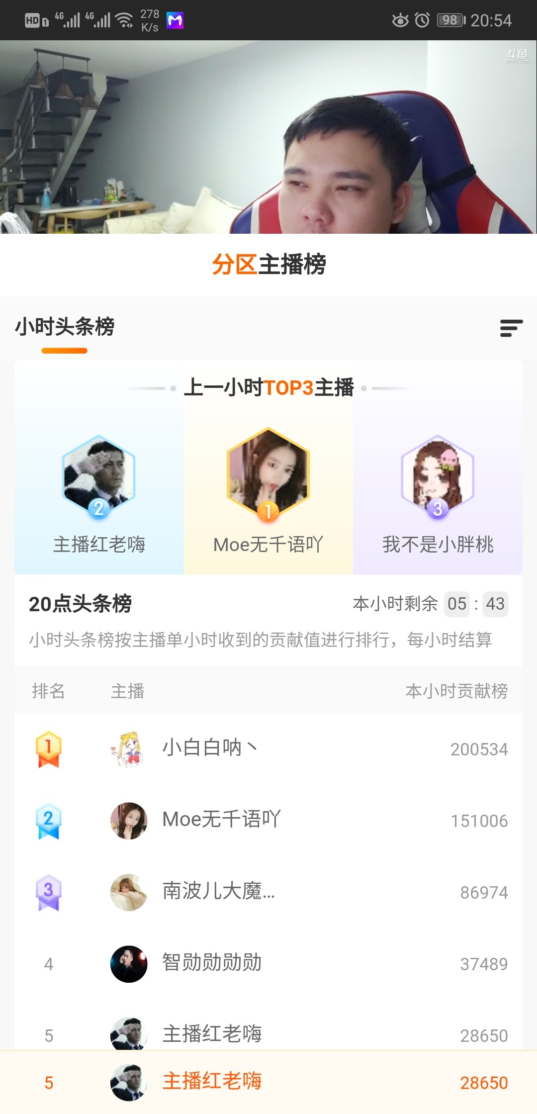 刚一开播,直播热度就不断上涨,并攀升到百万这多,礼物也不断,并成功连续拿下当时多个小时榜的前三!