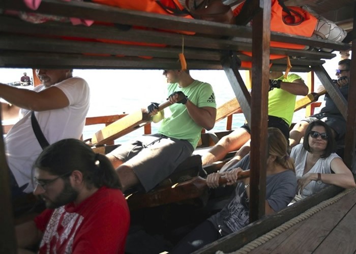 海军指挥官波利赫罗纳基斯(Nikos Polychronakis)负责扬帆及掌舵,打拍子引导游客划船。有水手担心游客体力不足以推动大船,但波利赫罗纳基斯笑言︰“那根本不重要,重要的是让他们了解战船和玩得开心。”参加观光团的瑞士游客罗斯里(Martin Roosli)指划动战船殊不轻松,直言︰“我难以想像怎么用这艘船横越岛屿!”