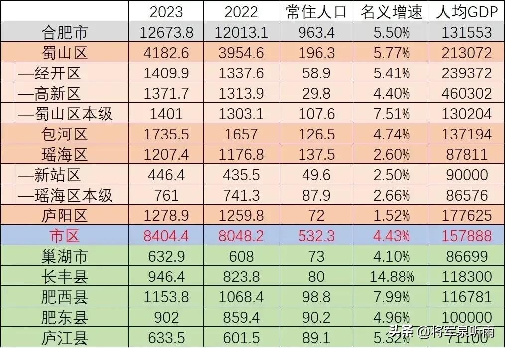 合肥GDP 蜀山人均3万美元超发达国家水平,肥西超长丰,庐江超巢湖