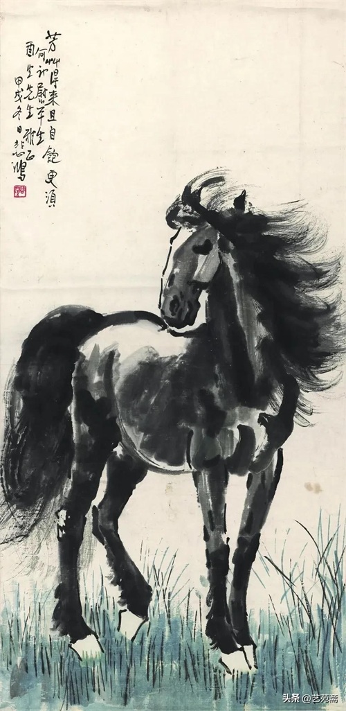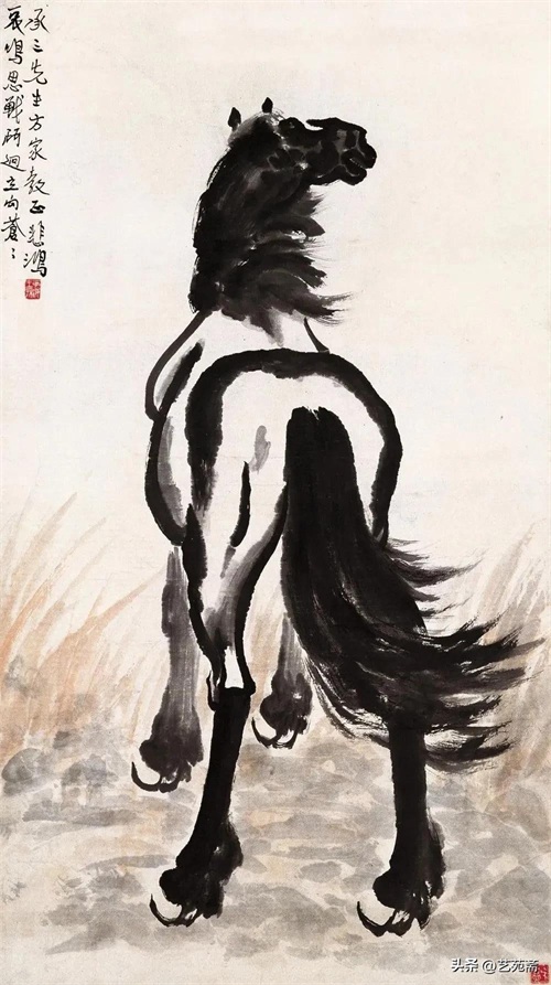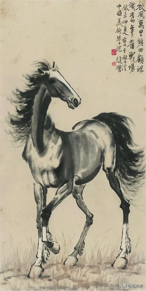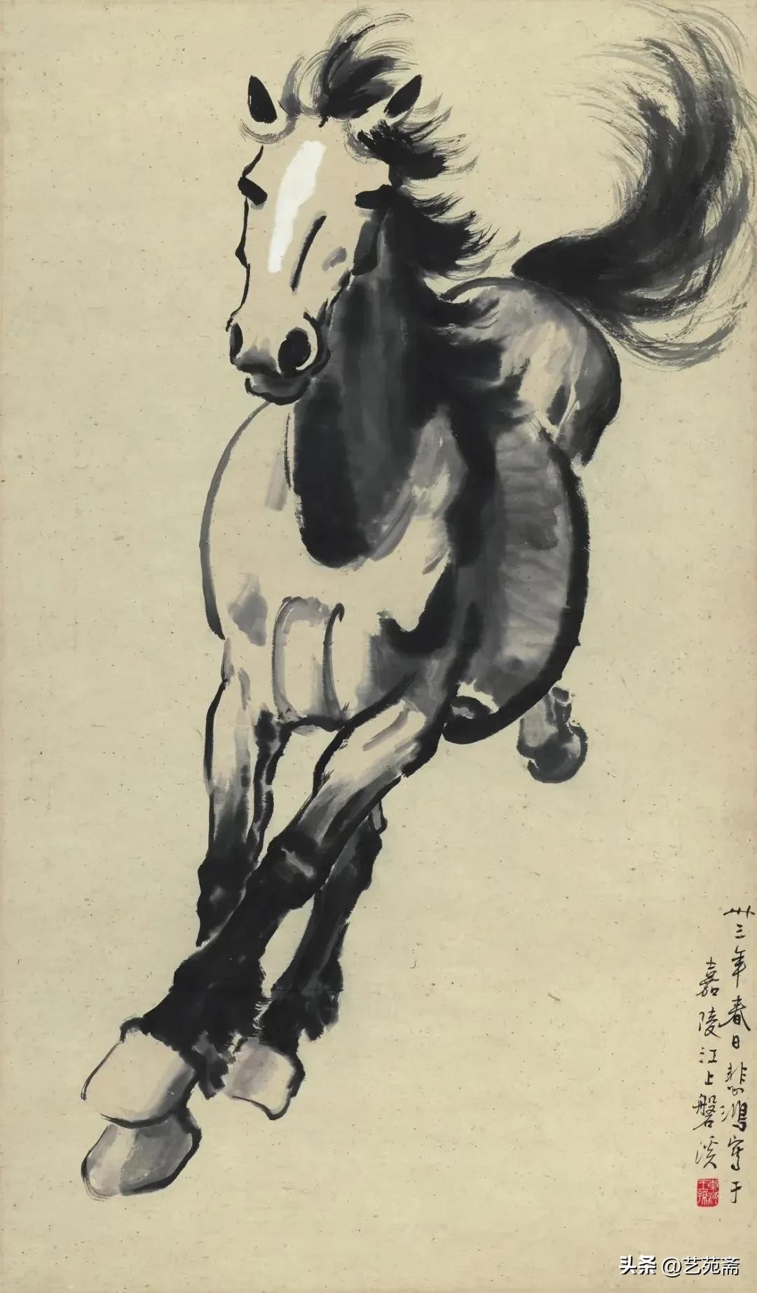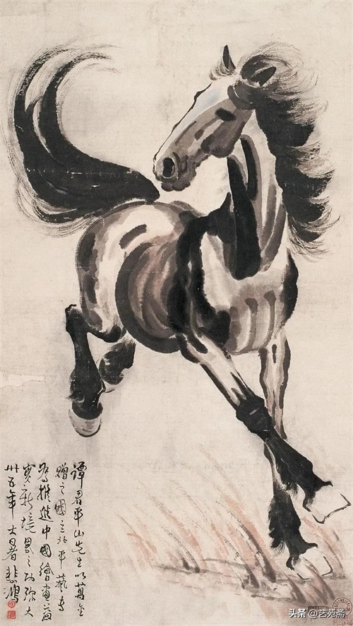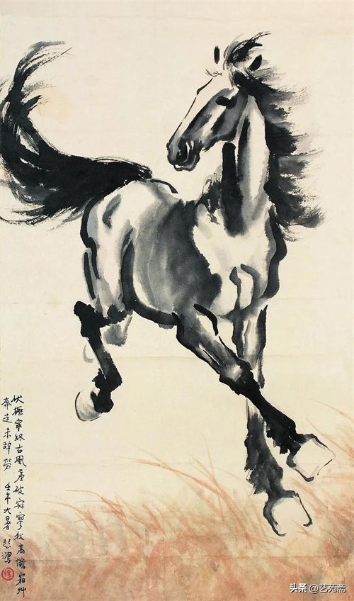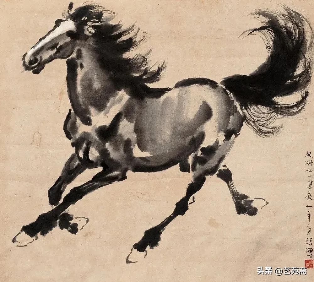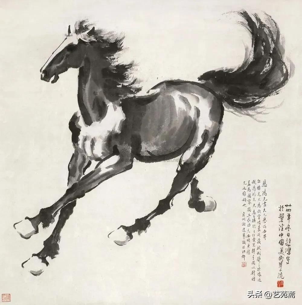 中国现代著名画家徐悲鸿笔下的马,大笔勾勒,笔墨厚重,铿锵有力
