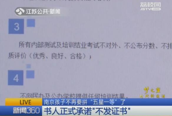 南京孩子不再要拼“五星一等”了 书人正式承诺“不发证书”