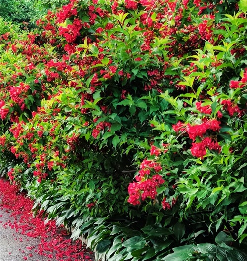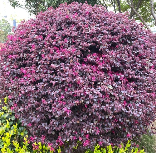 主要分布于湖北、湖南、福建等地,近年来在西北内地也逐渐受到欢迎。红花继木叶片精巧,可作为绿篱或圆球状树形,花朵呈红色,四季皆可观赏红叶。