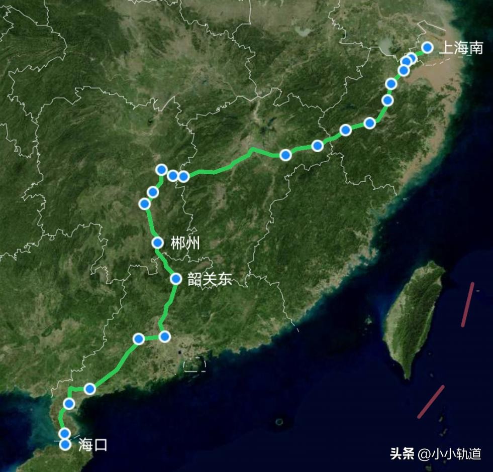 列车途经省份:上海市、浙江省、江西省、广东省、海南省等4省1市。