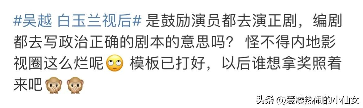 倒不是质疑吴越老师的演技,只是说《县委大院》这部男性为主的剧里,女性角色戏份不多,而且这部剧的播出效果和热议度还是比较欠缺的!