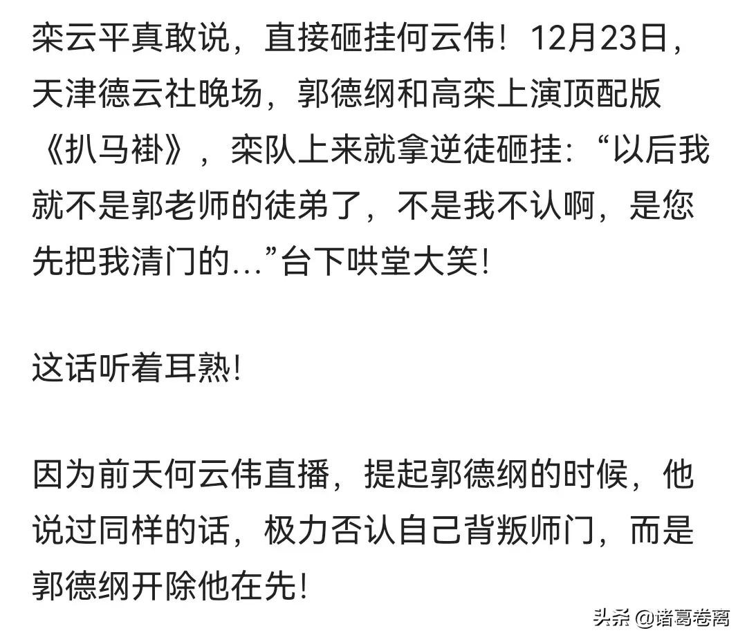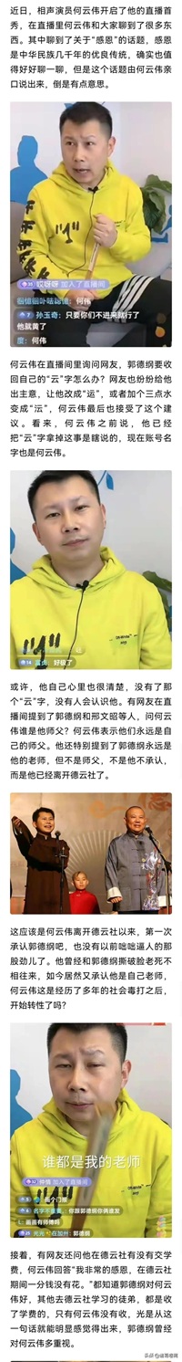 之前很硬气说把云字还给郭德纲,咋现在还顶着个何云伟的大名讨饭吃?