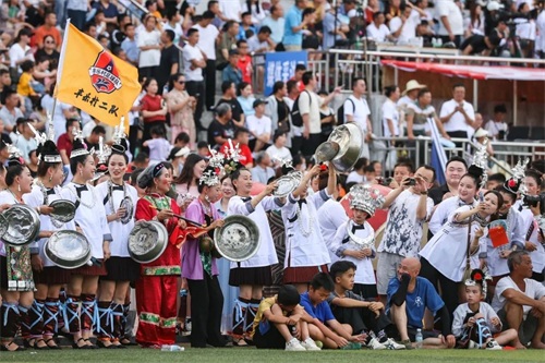 2023年5月,一场别开生面的足球比赛赚足了人们的眼球:“榕江(三宝侗寨)和美乡村足球超级联赛”。与众不同的是,这场球赛完全由由民间自发组织举办,不仅赛事由村民组织、参赛者也基本都是村民。拉拉队表演让人感受到了“最炫民族风”,十里八乡的村民自制道具、自发集结,他们身着民族服装,唱响天籁,把苗族、侗族等多民族文化融入现场表演。让人意想不到的是,就连比赛的奖品也十分接地气,鸡、鹅、羊、猪、牛轮番上场。由此,网友形象地将该项赛事称为“村超”。