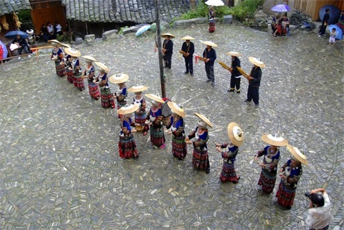 鼓楼里悠扬的侗族大歌,清晨户户捣衣声,随处可见的晾晒的扎染侗不,都是侗族文化的象征。伴随着侗族人生活日常的是扎染工艺。