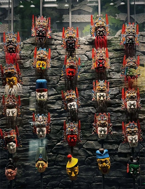 屯堡中的非遗地戏,也随着屯堡的保存而传承了下来。历史上,随着屯堡制度退出历史舞台,为了阻止“武事渐废”的趋势,“有识者”想出了跳神戏的办法,在跳神中演习武事,就是地戏的缘起。头戴木刻假面,脸部蒙盖青纱,手持短小兵器,但表演动作幅度大,演唱着七言和十言韵文,这就充满神秘的地戏。如今,屯堡与地戏早已成了安顺旅游的重要标签。